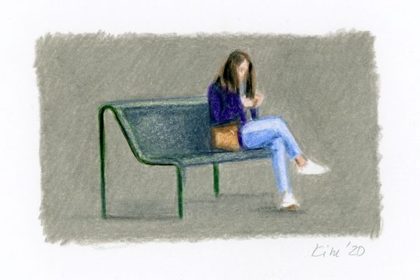 Farbstift auf Papier, 6 x 10 cm