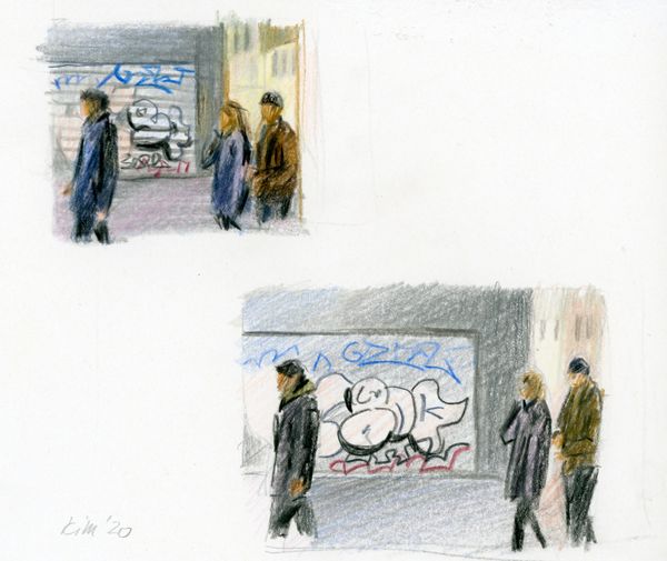 Farbstift auf Papier, 14 x 16 cm